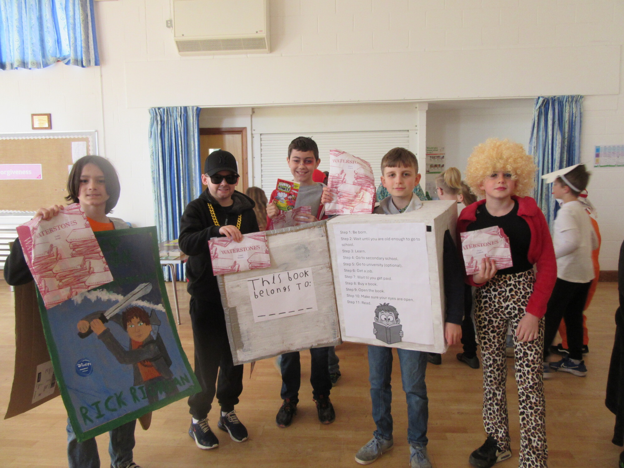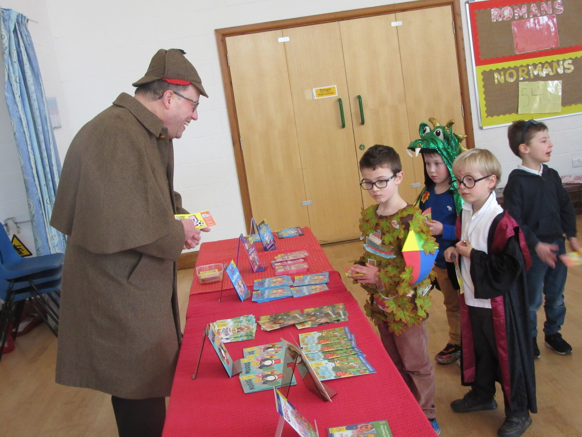 ON Thursday 5th March, the whole school celebrated World Book Day. Children and staff came into school dressed either as a character from a book or in comfortable clothes which they enjoy reading in. David from Waterstones, came into school dressed as Sherlock Holmes and ran a book shop in the hall with Ruth Saunders, one of our volunteers, so that every child could swap their book token for a book. Earlier in the week, all the children had spent time looking at the books so they knew which one they were going to choose.