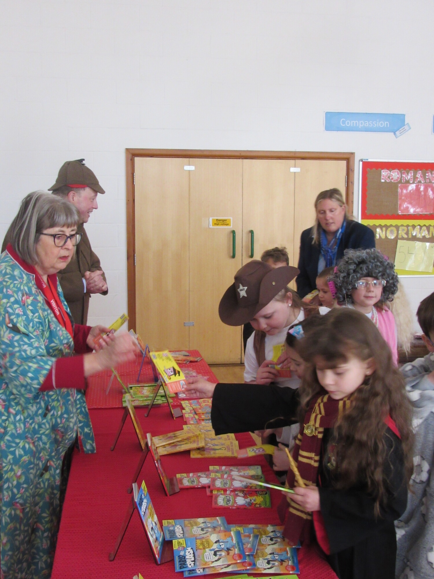 ON Thursday 5th March, the whole school celebrated World Book Day. Children and staff came into school dressed either as a character from a book or in comfortable clothes which they enjoy reading in. David from Waterstones, came into school dressed as Sherlock Holmes and ran a book shop in the hall with Ruth Saunders, one of our volunteers, so that every child could swap their book token for a book. Earlier in the week, all the children had spent time looking at the books so they knew which one they were going to choose.